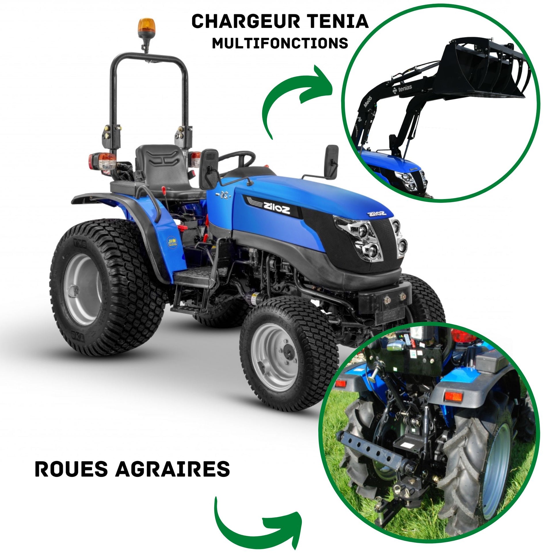 Il est également possible de configurer votre tracteur SOLIS 26 Mécanique en lui ajoutant un chargeur frontal multifonctions. Pour ce faire, nous vous proposons le chargeur SOLIS spécialement adapté pour le SOLIS 26 et présentant une capacité de levage de 365kg. Grâce à ses solides vérins double effet et à son système de changement rapide des accessoires, il saura être votre allié dans bien des applications. De plus, le large choix d'outils compatibles permettra une utilisation polyvalente pour des applications de manutention (fourche palettes, godets divers par exemple) mais aussi pour des travaux agricoles (fourche à fumier, fourches à balles, pince à balles, etc).